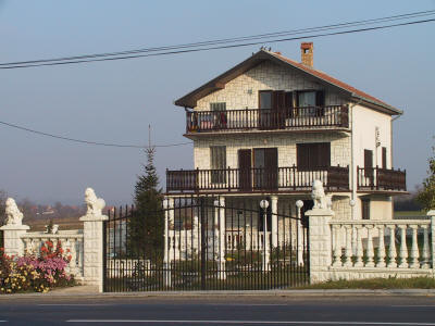 In the 60ies and 70ies many people went to Germany, Austria or other countries to work there. Many came back, and from their savings they build homes which are easily to distinguish from the traditional style of their neighbors. They resemble small castles, with lions or other figures, nice gardens and decorated fences, showing the success of their owners.
