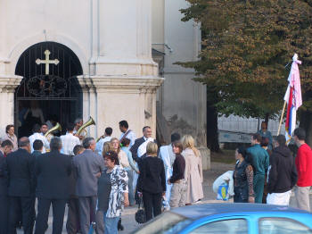 Traditional Truba music. Only foreigners believe that this is just loud. | The Serbian flag is part of every marriage. |