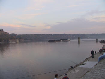 Peterwardein (Petrovrdin) fortress was the most important protection of the old Austria against the turks. Not only the fortress, also the hill was protected and full of secret guard posts. Even the officers knew only the part they were doing service in. But when the construction was finished, the danger was gone. | The bridges over the Danube have been destroyed in 1999. The remains can be seen here, the new bridge is at a new spot. Now, the Danube can be used again by boats as the pontoon bridges are not needed any more. |