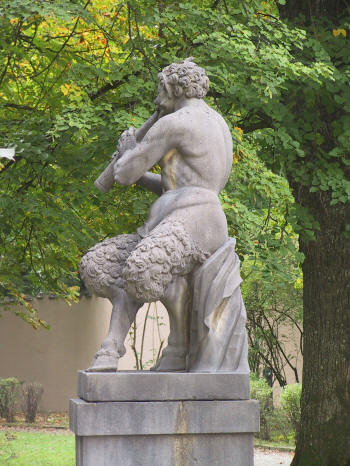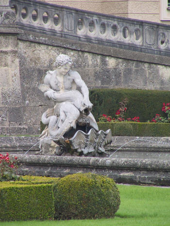 Im Park stehen etliche Steinfiguren vom Anfang des 17. Jh., darunter ein Herkules aus der alten Residenz. Einige Figuren stammen aus dem niederösterreichischen Schloß Thürnthal und sind im 20. Jh. über Leopoldskron hierher gelangt. Das mit einem Uhrturm versehene Torwächterhaus wurde 1732 erbaut. |