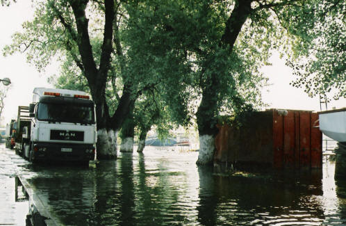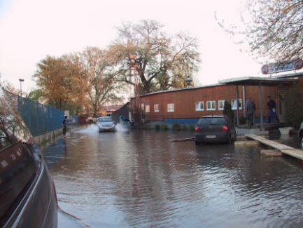 An der Donau und Sava sind die meisten Restaurants auf Hochwasser eingestellt und haben Behelfsstege bereit. |