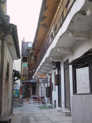 Ein Fenster in diesen alten Häusern steht immer etwas vor - so kann man die Eingangstür von innen beobachten. |