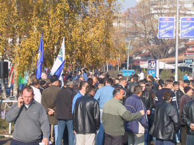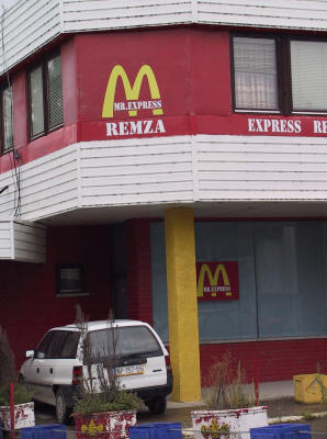 | Bei diesem Restaurant war eine amerikanische Boulettenbraterei Vorbild, aber an den Geschmack der Cevapcici kommt sie nicht heran. | Politisch ist der Sand¾ak eine besondere Region, hier sind lokale Parteien vorherrschend. Hier eine Straßenversammlung. |
