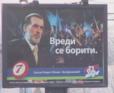 Die Partei von Vuk Drašković, lange Zeit der wichtigste Oppositionelle gegen Milošević und bis 2007. Außenminister. Er vertrat einen klaren Kurs für den Westen. |