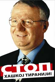 "Stop der Haager Tyrannei" Der SRS-Vorsitzende Šešelj ist vor dem internationalen Gerichtshof in Den Haag angeklagt. |