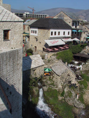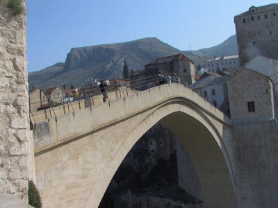 Die berühmte Brücke von Mostar. 1556 erbaut wurde sie 1993 zerstört und 2004 wieder aufgebaut.