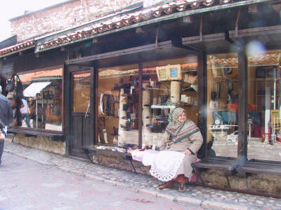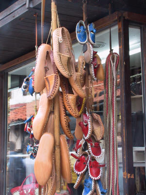 Gleich neben dem "Club Bill Gates" bietet man opanki, traditionelle Schuhe, an.