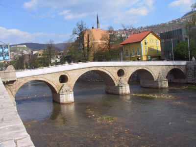 Die Lateinerbrücke. Hier wurde 1914 der österreichische Thronfolger Franz Ferdinand und seine Frau Sophie erschossen.