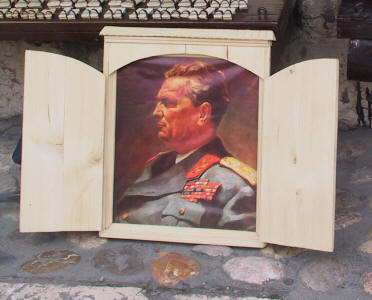 Für Nostalgiker gibt es auch noch einen kleinen Tito-Altar, zum Zuklappen, wenn weniger nostalgische Nachbarn kommen ... |