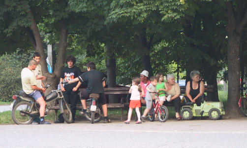 Samstag Abend. Man trifft sich vor dem Haus oder auf dem Dorfplatz. |