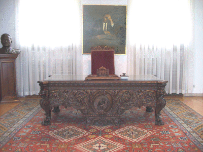 | Es gibt einen großen Saal mit einer beeindruckenden Sammlung von Staffelhölzern. Die Jugend lief quer durch Jugoslawien, um die Gemeinschaft der Landesteile und den Willen für eine friedliche Zukunft zu demonstrieren. | Daneben gibt es eine Ausstellung aller Geschenke, die Tito während seiner langen Regierungszeit bekommen hat. |