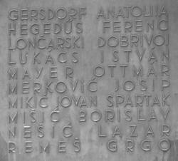 The monument of the victims of Fascism shows German, Hungarian and Serbian names. |