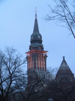 Subotica is the third largest city of Hungary. Rich tradesmen for wheat or fruit live in this town. Most of the buildings are from the time at the turn of the century in Secessionist style. Never before or after the city was as rich. The marvelous city hall, built around 1910 in "art nouveau" style remains till today. Remarkable are the glass windows of the Pest master Max Roth and the paintings showing Hunyadi, Rįkóczi, Kossuth and the beloved empress Maria-Theresia.