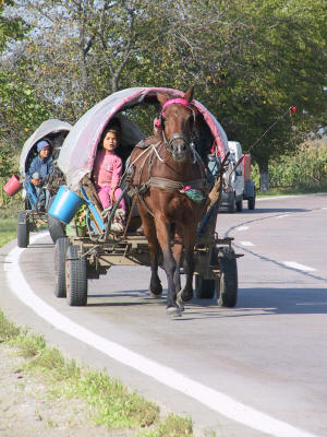 And the gypsies travel on horse carriages as they did for centuries.