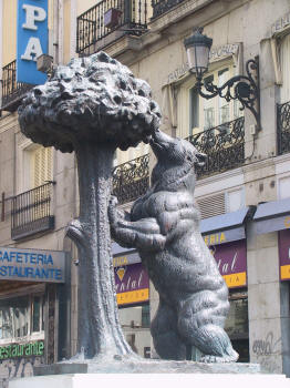 | Das Wahrzeichen von Madrid: ein Bär, der am "Erdbeerbaum" nascht |